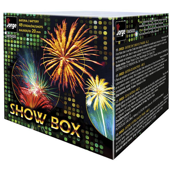 Efekti: zelene palme sa belim svetlucanjem i pucketanjem u kombinaciji sa zviždanjem raketama, raznobojno rasprskavanje sa pucketanjem i svetlucanjem